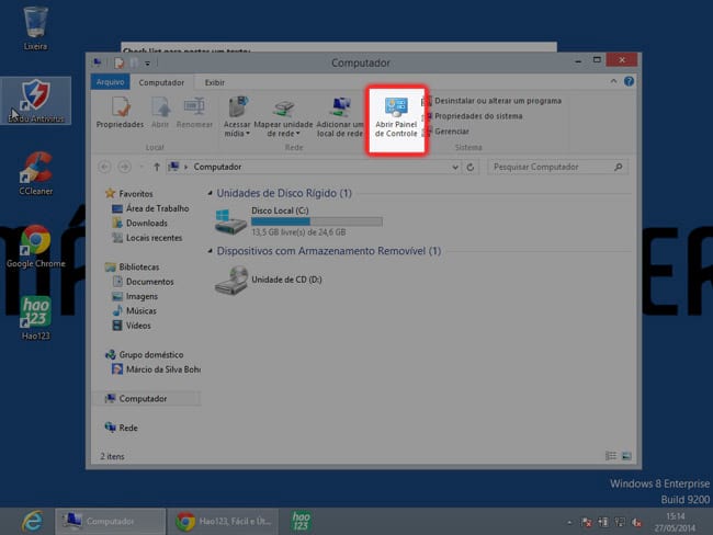 Agora acesse o painel de controle de sua máquina, aqui estou usando um Windows 8.